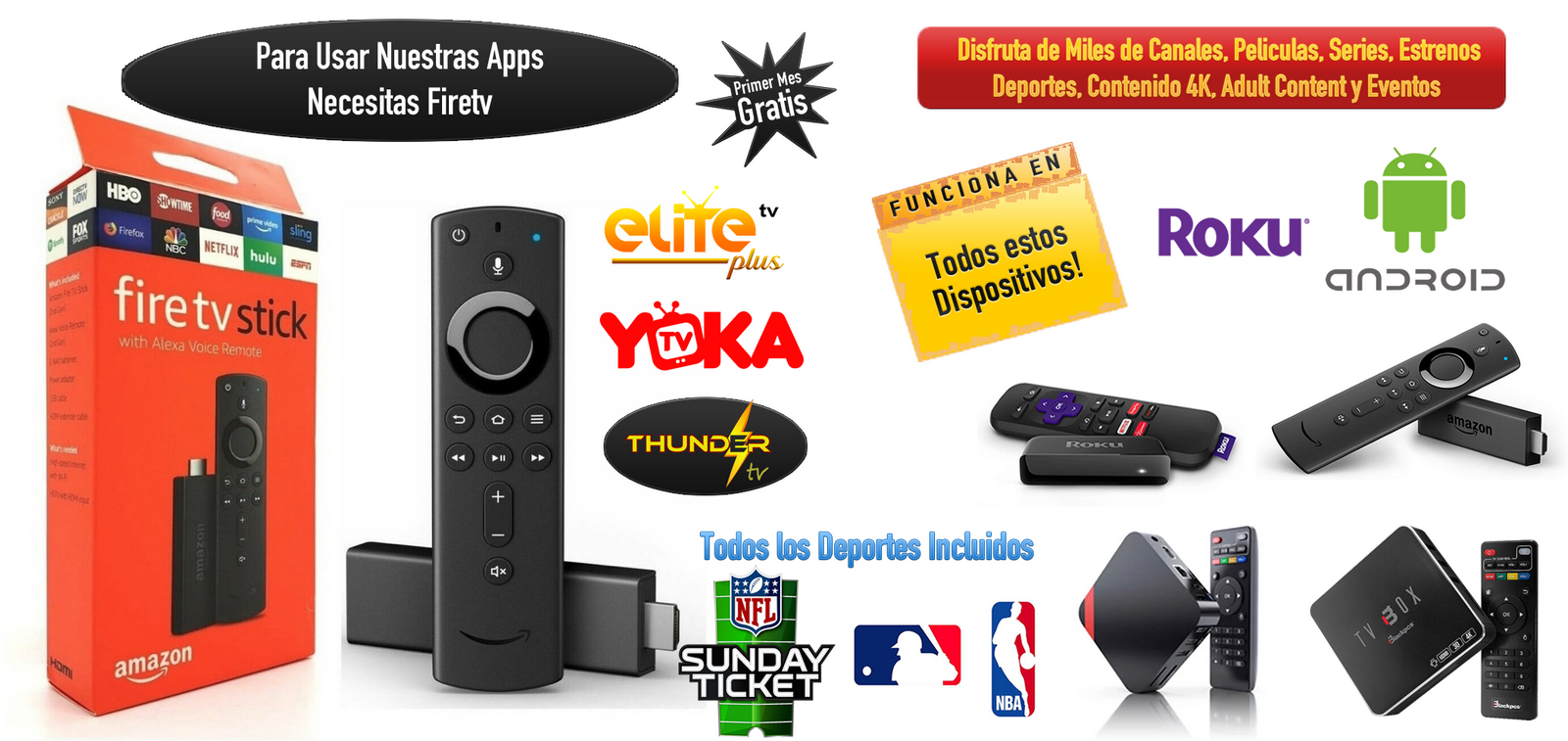 1 Dispositivo 3 MesesPara Roku - Firetv - TVBox1000 canales en vivoMiles de Peliculas y Series